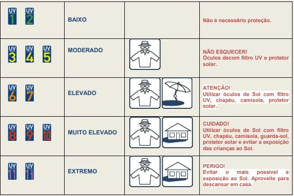 Então podes consultar esta informação de forma diária para saberes que conjunto de medidas de proteção solar deves adoptar. Se o índice UV do dia for igual ou superior a 3, já é recomendada a aplicação de protetor solar!